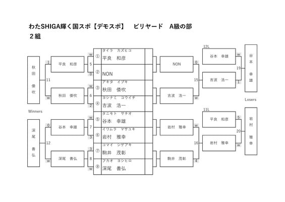 ◇ A級の部 14名ダブルイリミネーション→8名決勝シングルトーナメント(6ラック先取)