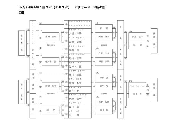 ◇ B級の部 24名ダブルイリミネーション→8名決勝シングルトーナメント(5ラック先取)