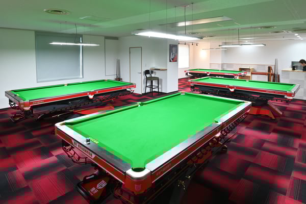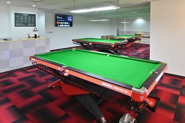 ここの広さは『プールラボ』の約1/3で、台数は4台が限度。ビルの大家さんとお隣のテナントさんに相談して、壁の位置を改修しながら理想のテーブルレイアウトを追求しました。どの場所で構えても150cm以上のスペースがあるので、背の大きな人でも普通にプレーできます。