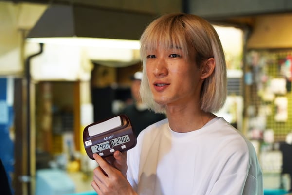 3:ゲームクロックについて説明する、早稲田「クレセント」の富樫 雄大さん