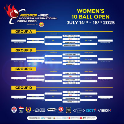 Draw for Women’s Group A-P Predator PBC Indonesia International Open 2025 #IIO2025 #BiliarIndonesia #10BallChampionship #POBSI #PredatorPBC2025 #PBCInternationalOpen #BilliardTournament #IndonesiaInternationalOpen2025 pic.twitter.com/QMo6jZIFqU