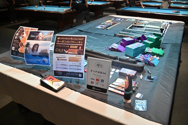会場内にビリヤード用品販売ブースを設け、