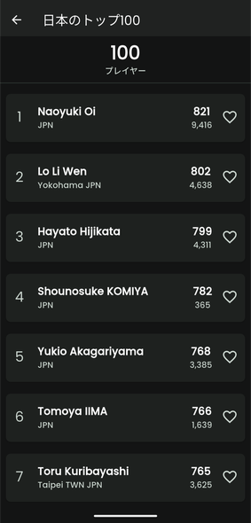 世界、アメリカ(全体、各地)、カナダ、スウェーデン、日本のトッププレイヤーリスト(画像)が見られます。今後さらに増えていくと良いですね。