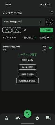 ◇ プレイヤー検索&ハンデ計算機能