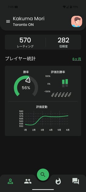 北米では、このFargoRateを使ってクラス分けやエントリーフィーの金額を設定するトーナメントが数多く行われています。私の住んでいるカナダのトロントでも、コロナ後あたりから増えてきました。アプリの日本語化を機に日本でも広がって欲しいですね。