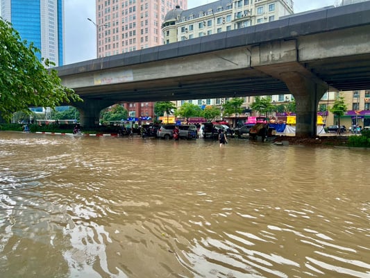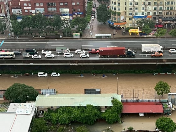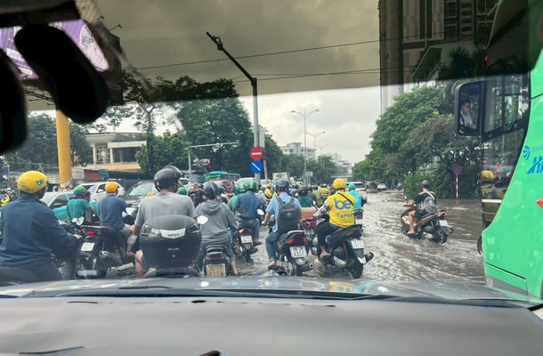 翌8日。まだアパート前の水たまりは残っていましたが、試合は行われるという連絡がありました。Grab(ライドシェアサービス)で車を呼ぶと、いつもより配車に時間は掛かりましたが、何とかアパート前まで来てくれそう。建物の前の水たまりをテーマパークのアトラクションかのように進んで陸の孤島を脱出! 試合会場周辺はもう水たまりもなく普通の光景。しかし、所々にある深い水たまりをモノともせずにバイク集団が移動する様を見て、ベトナム人のタフさを思い知らされました。