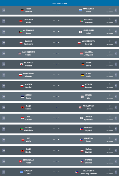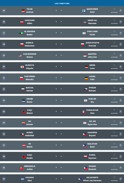 方式:ダブルイリミネーションラウンド → 32名決勝シングルトーナメント