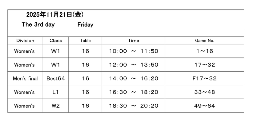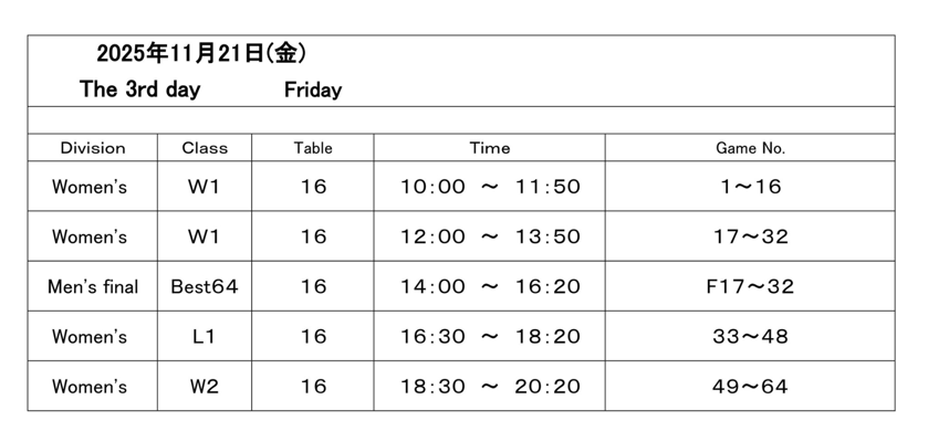 今日21日は大会3日目(Day3)。