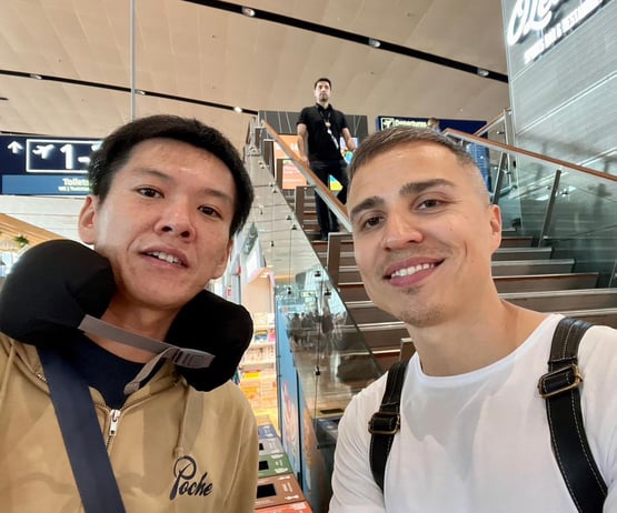 フランクフルトからフルダまでは約100km。交通手段は電車と車がありましたが、到着したのが18時と遅かったですし、カナダのジョン・モーラ選手も同じ便で着いたので、3人一緒により早く行ける車での移動を選びました。僕も大井プロも翌日のDay1の第1回転(現地6日朝10時)に試合が組まれていたので、少しタイトなスケジュールになってしまいました。